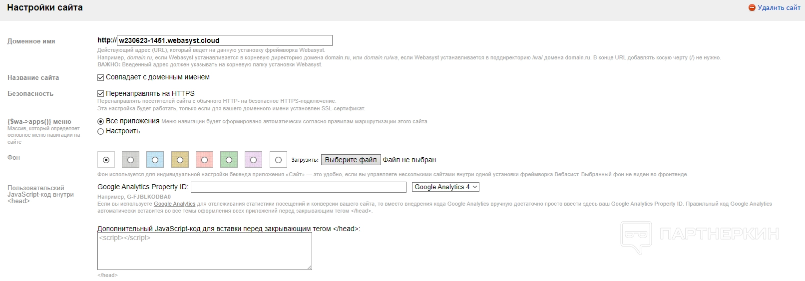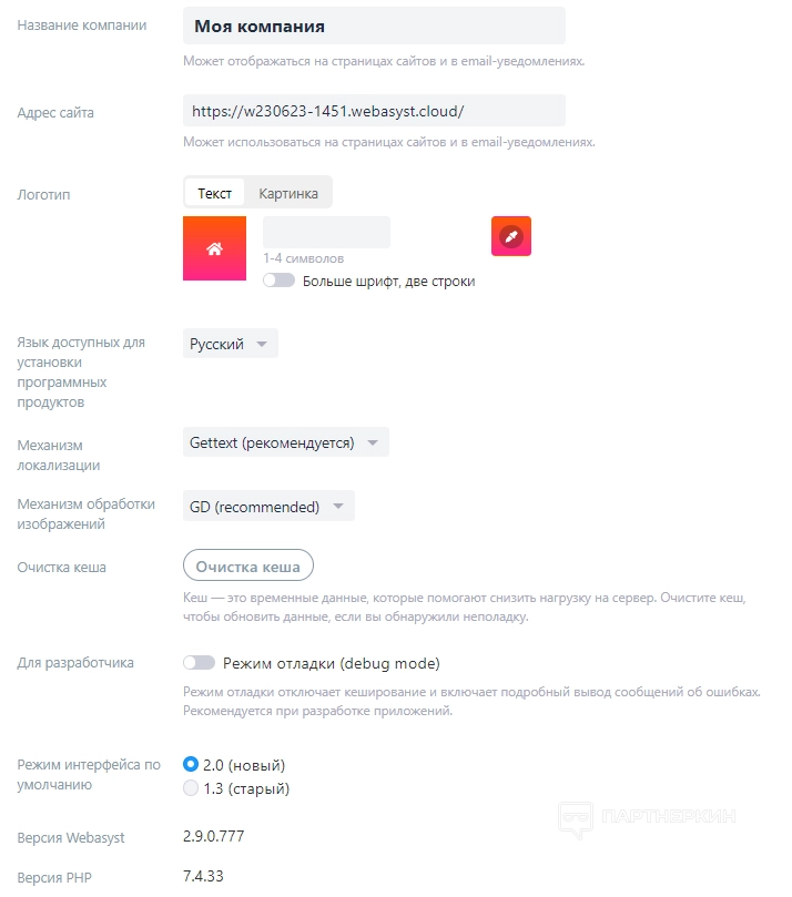 - доменное имя (действующий адрес, который ведет на данную установку фреймворка Webasyst);