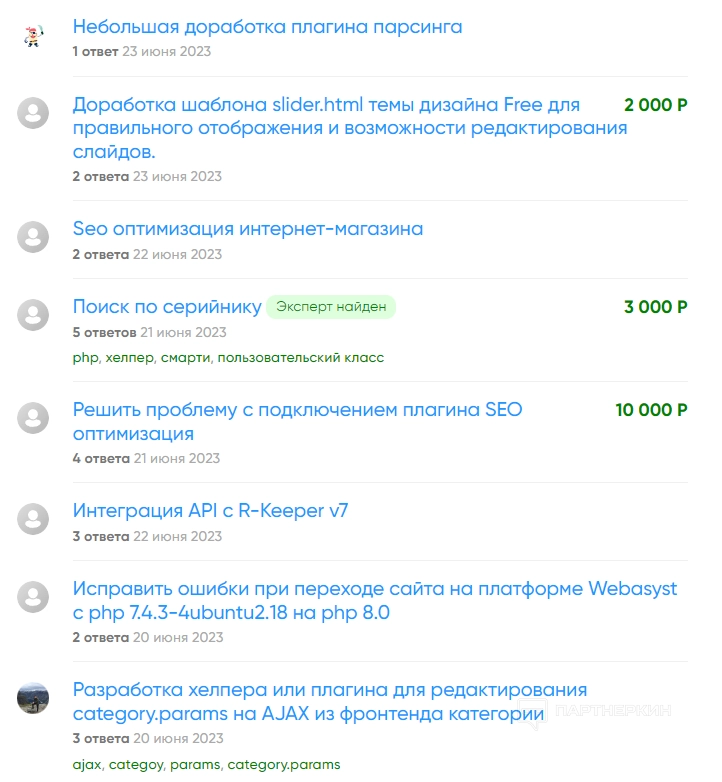 В этом разделе пользователи публикуют задания, которые нужно выполнить. Как это выглядит:
