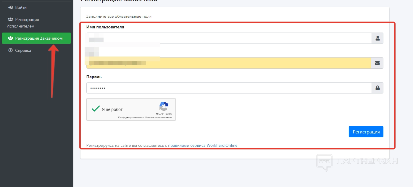 Чтобы пройти регистрацию, в первую очередь пользователю нужно определиться с тем, под каким статусом он будет регистрироваться: заказчик или исполнитель. Так как на момент написания статьи регистрация для исполнителей была временно недоступна, рассмотрим последовательность создания аккаунта для заказчика.
