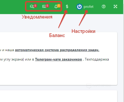 В верхнем правом углу есть кнопки, с помощью которых можно попасть в центр уведомлений, пополнить счет или получить доступ к настройкам аккаунта.