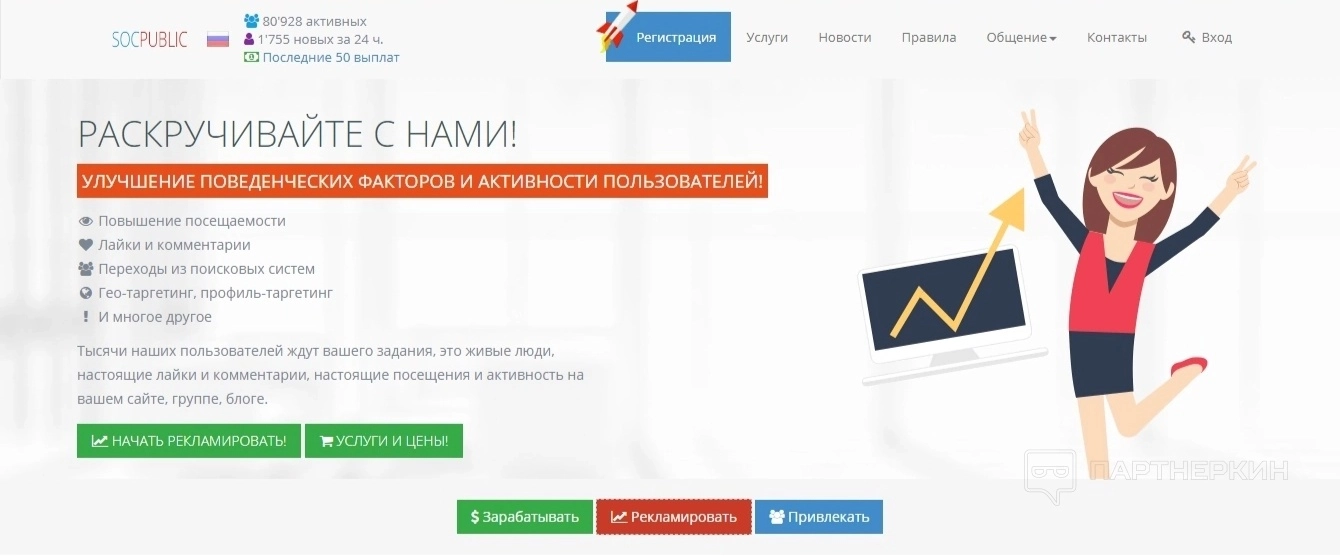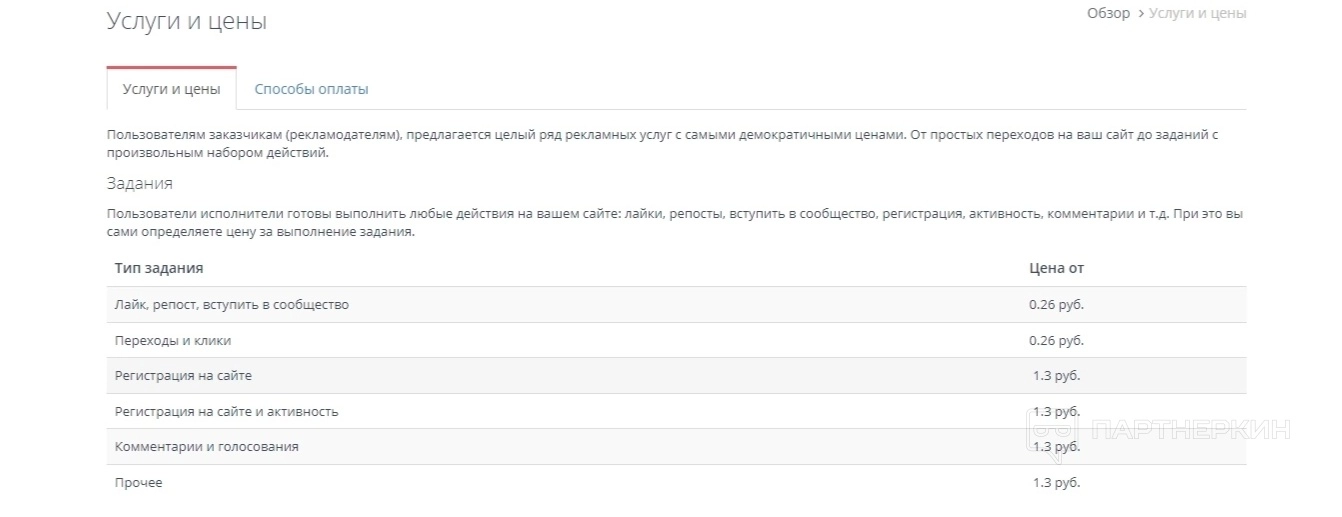 Для тех, кто собирается стать заказчиком продвижения своих веб-ресурсов, платформа предлагает несколько типов раскрутки: