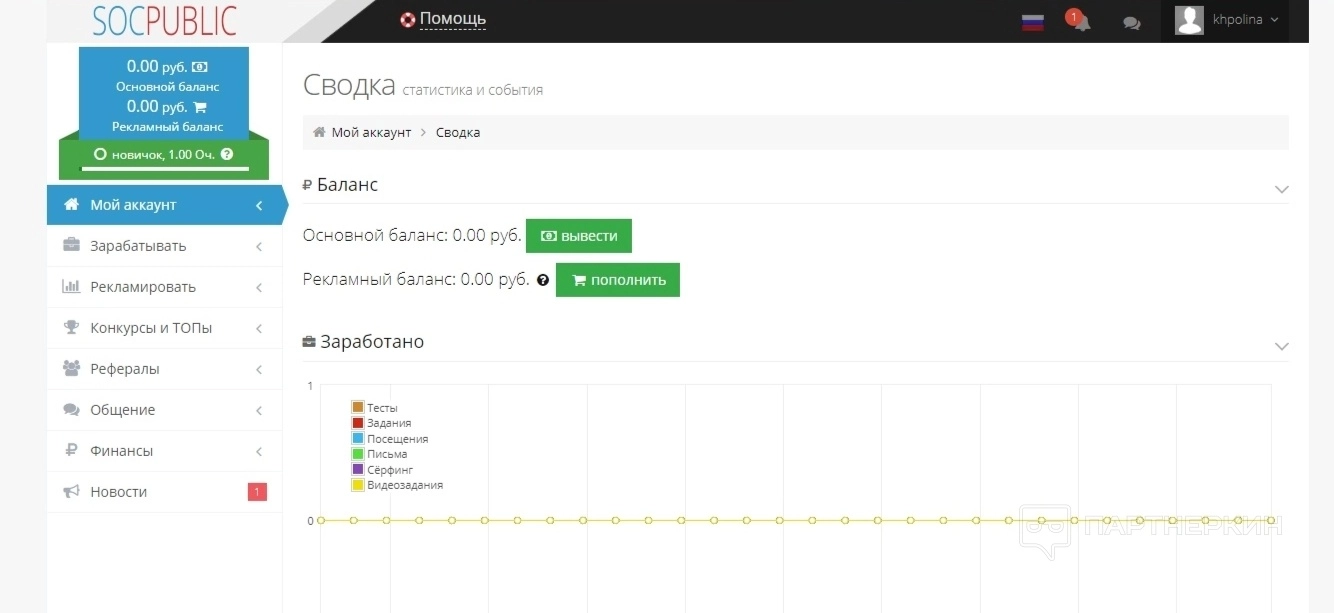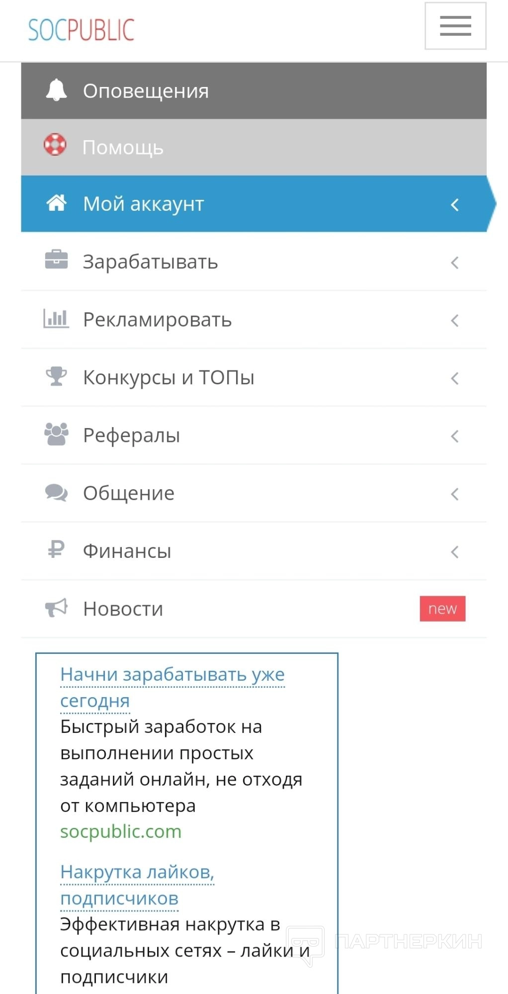 - Рефералы — раздел для тех, кто планирует заработок за счет участия в партнерской программе и привлечения других пользователей на площадку.
