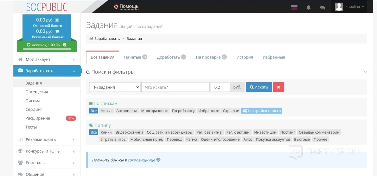 Принцип работы тот же: необходимо зайти в задания и выбрать понравившееся, после чего начать его выполнение, дождаться проверки и получить вознаграждение.