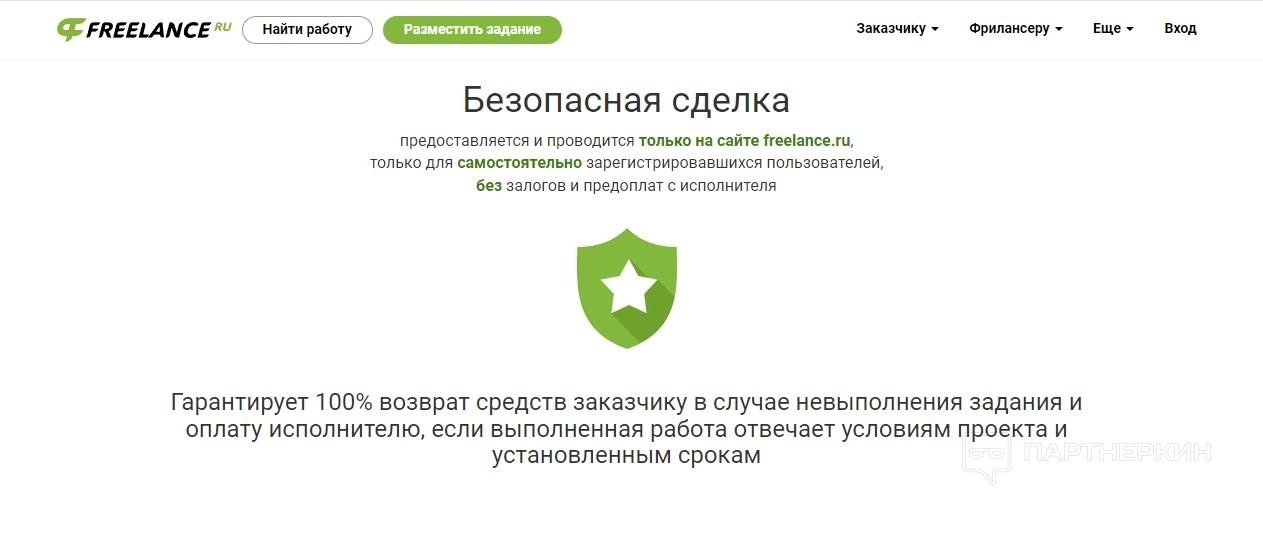 Безопасность обеих сторон на сайте защищается при помощи безопасной сделки. Таким образом исполнитель будет уверен, что оплата поступит на счет после выполнения заказа, а заказчик сможет получить свои средства обратно в случае невыполнения условий.