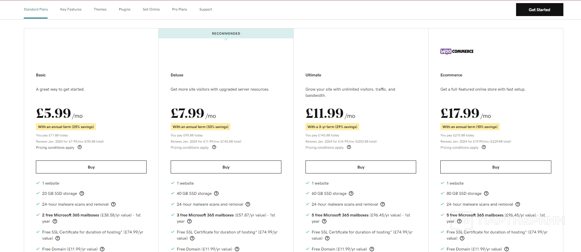 - Delux — в этом тарифе пользователь получает возможность подключить до десяти сайтов и бесплатный SSL к каждому из них. Также поставляется бесплатный домен и три электронных почты;