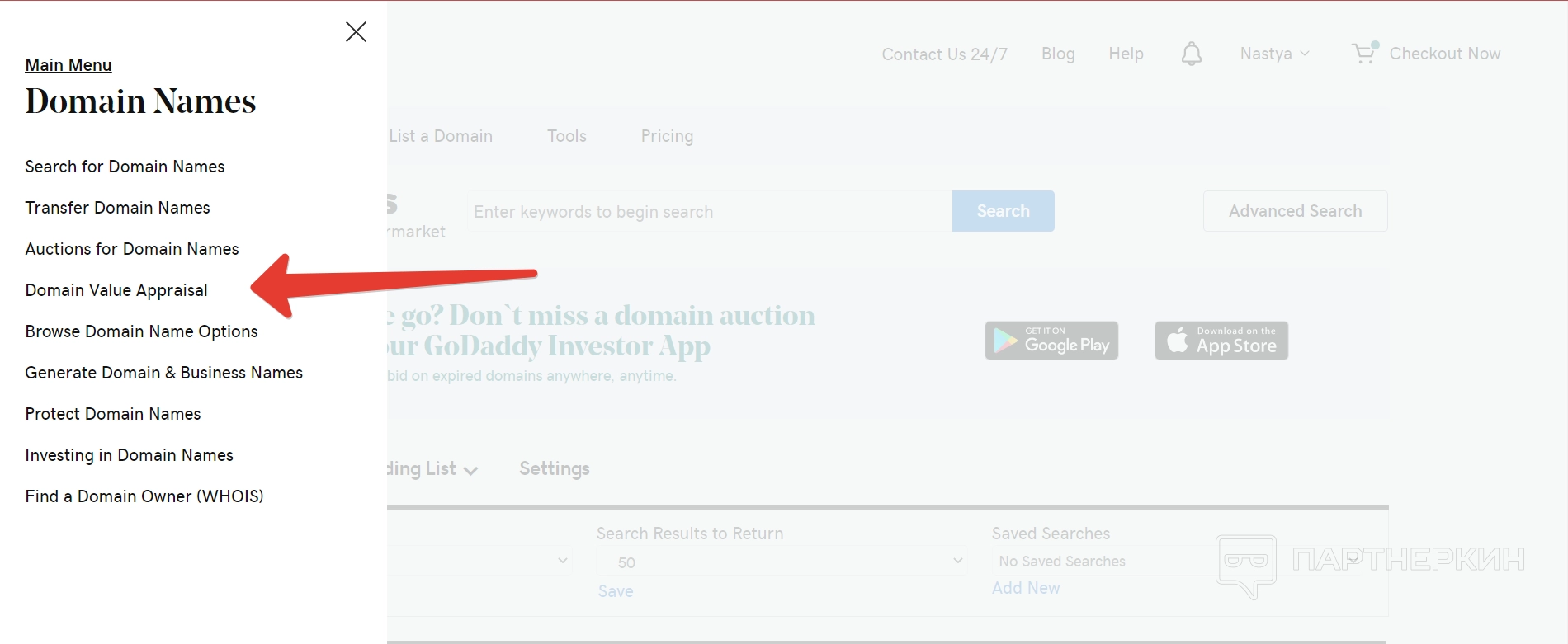 Оценка стоимости домена — в этом подразделе можно изучить стоимость домена, который интересует пользователя.