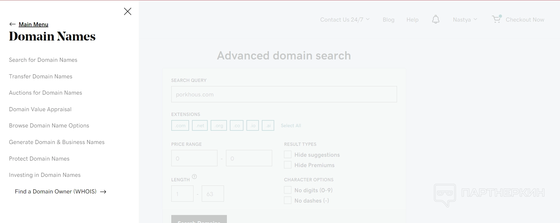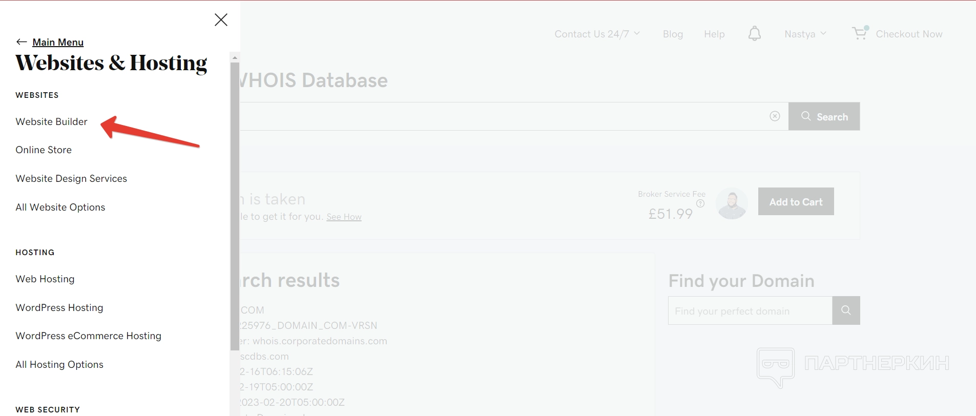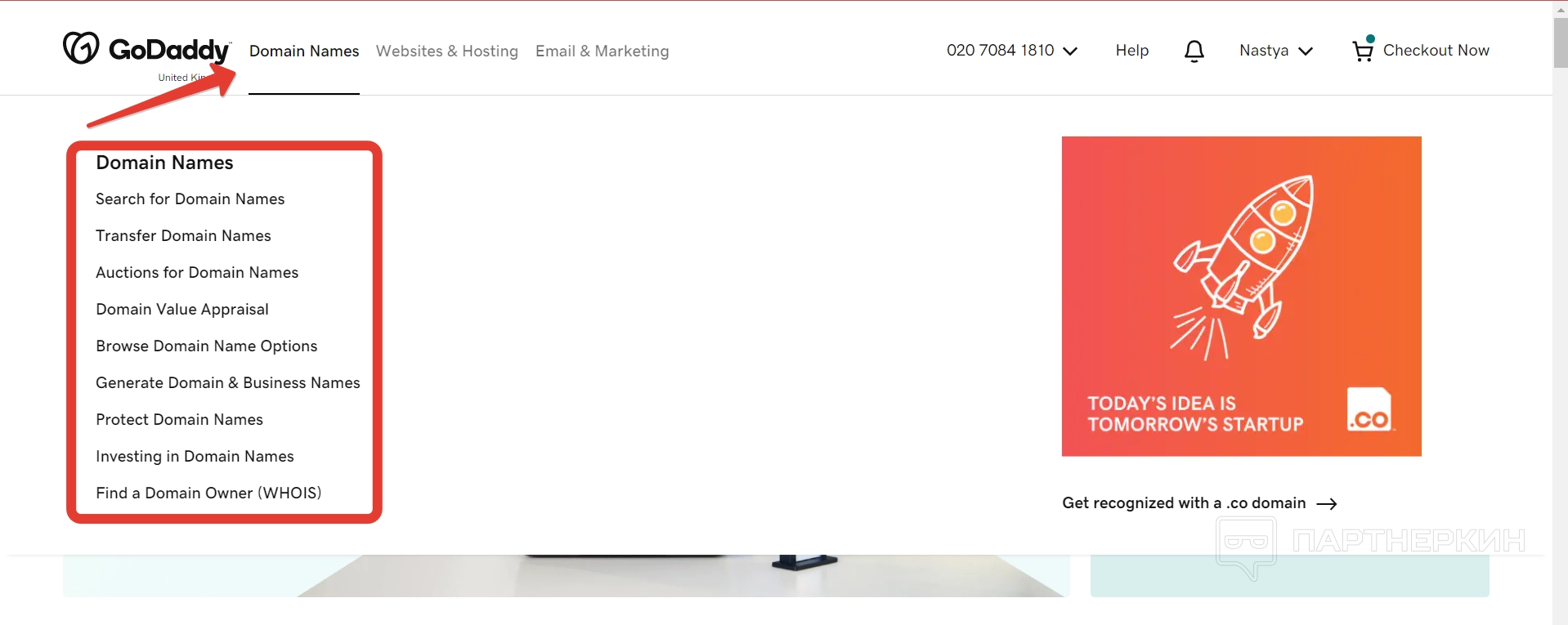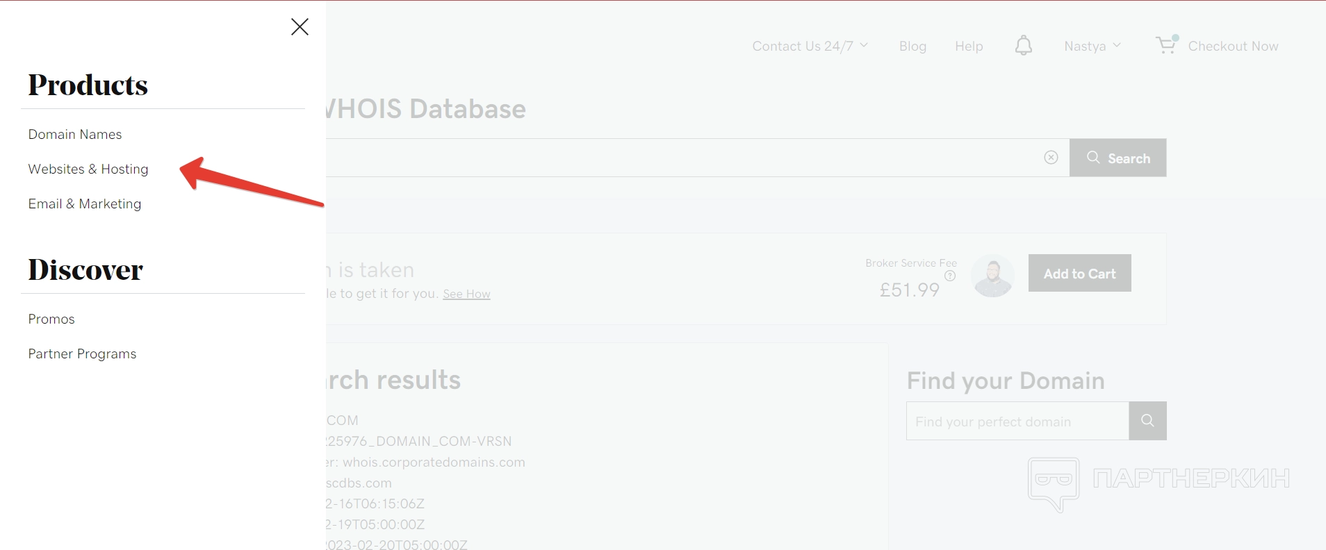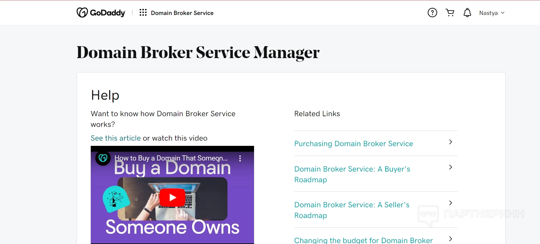 - брокер доменов — это интересный подпункт, так как в нем можно заказать услугу доменного брокера, который поможет приобрести тот домен, что занят. Это частая практика, ведь многие пользователи покупают дорогие домены, чтобы потом их продать по своей стоимости. Брокер возьмет на себя все задачи по коммуникации, переговорам и покупке домена. Для заказа услуги придется созвониться с менеджерами платформы;
