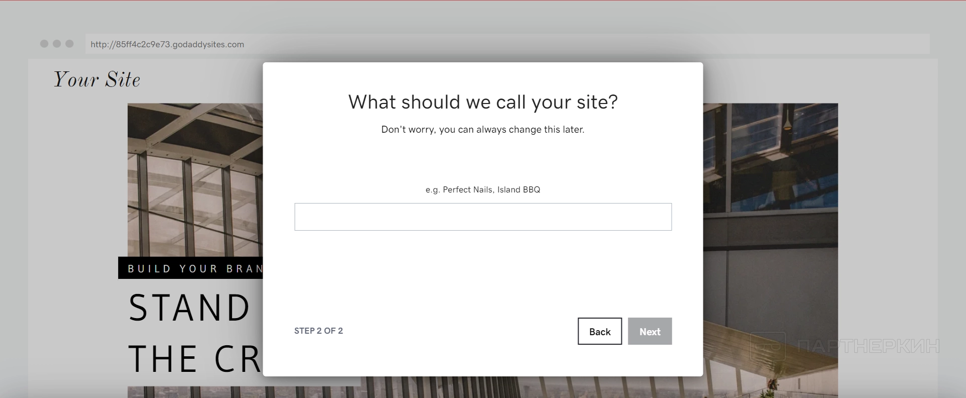 После выбора категории нужно указать название сайта — его можно поменять в любой момент потом.