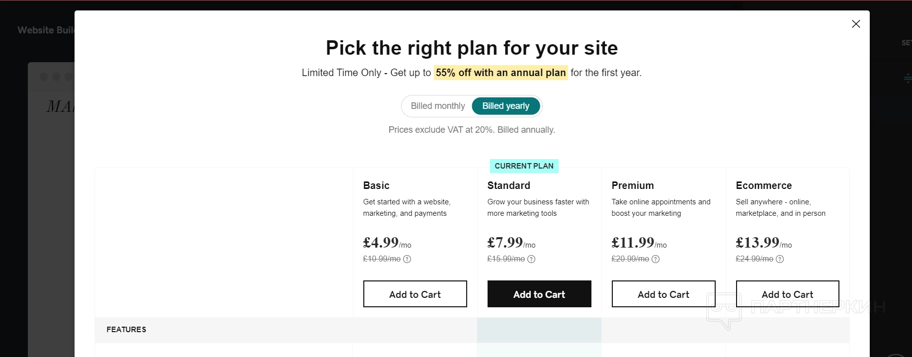 Важно знать, что большинство функций поставляются за дополнительную плату, за исключением продаж веб-сайтов. Но хоть она и бесплатна, за использование самого конструктора все же придется платить после окончания триала.
