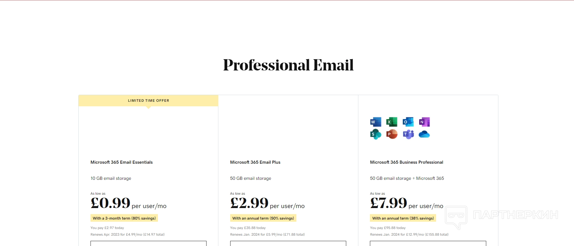 Например, профессиональная почта за 0,99£ дает доступ к 10 ГБ памяти, а также она соответствует домену пользователя. Почта Microsoft 365 уже стоит 7,99£ и дает возможность использовать до 50 ГБ памяти, 1 ГБ безопасного онлайн-хранилища и последнюю версию Office на более пяти устройствах Mac или ПК.