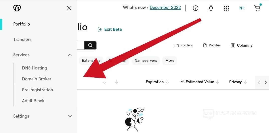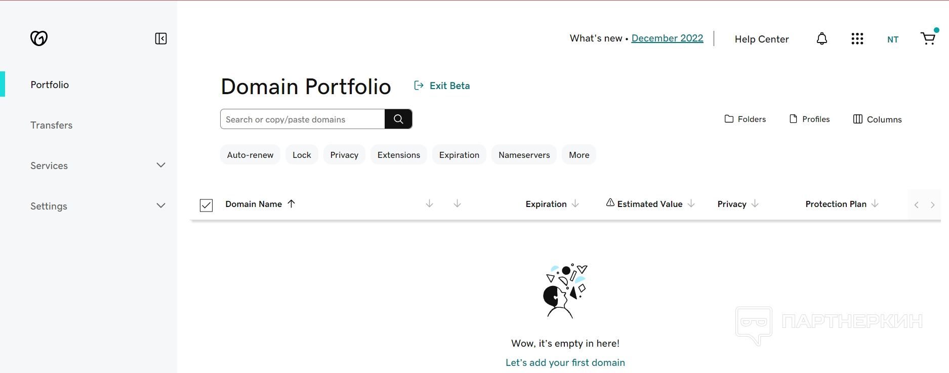 Панель состоит из четырех разделов — портфолио доменов, трансфер, услуги и настройки. По сути, в каждом разделе такие же услуги, как и те, о которых мы говорили выше — просто сюда пользователю будет быстрее перейти.