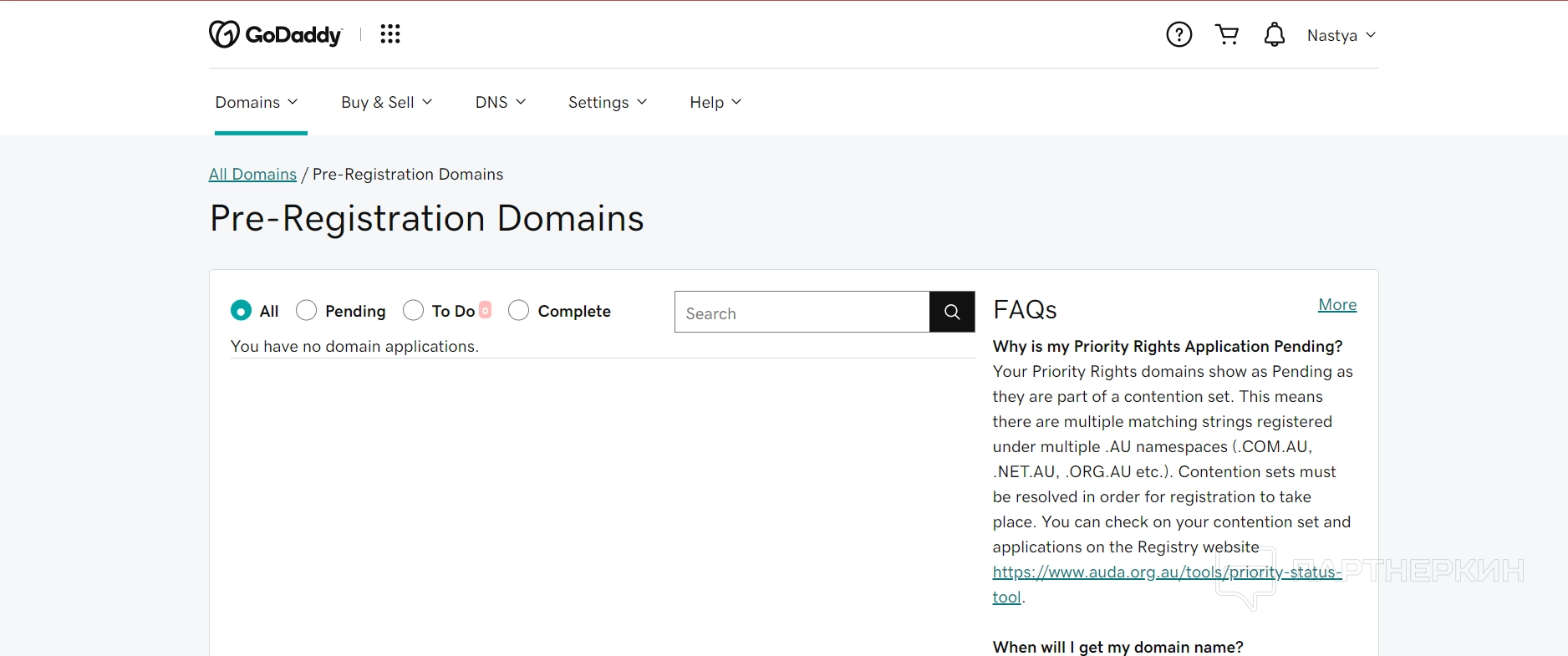 - предварительная регистрация — функция помогает заранее подать заявку на домен, который сейчас занят, но может освободиться. То есть пользователь как бы покупает права на домен заранее. Но тут важно знать, что подобные заявки подают и другие пользователи, поэтому не всегда запрос может быть положительным. Вполне вероятно, что домен выкупит другой пользователь;