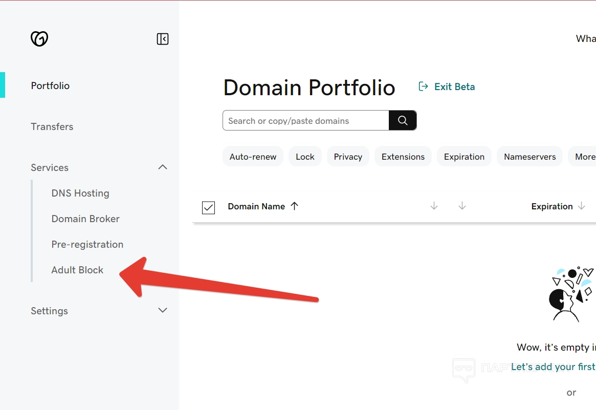 Услуги — это раздел, в котором можно использовать такие функции, как приобретение DNS-хостинга и использование доменного брокера, предварительной регистрации и взрослого блока. Давайте рассмотрим подробнее каждую: