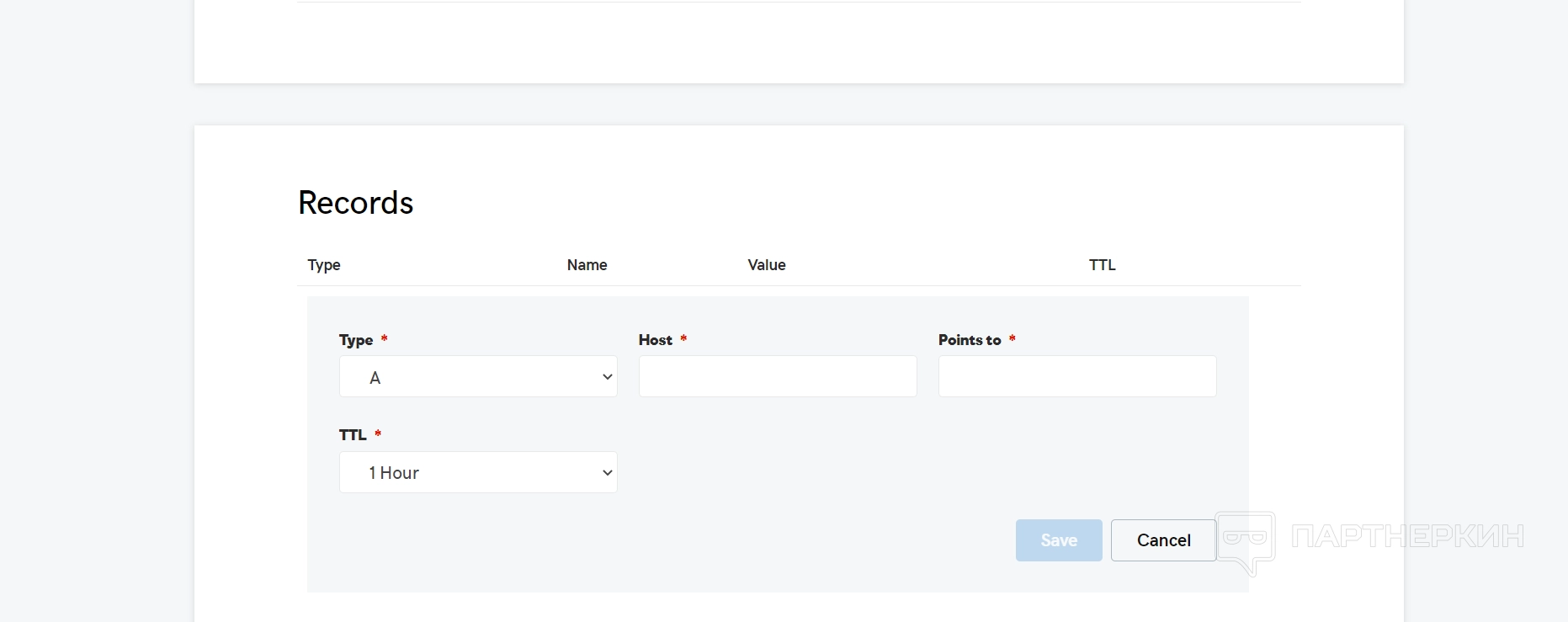 - шаблоны DNS — пользователи могут создавать шаблоны DNS для хранения DNS-информации и в любой момент привязывать их к доменному имени. Чтобы добавить шаблон, нужно указать его название, указать тип записи, а также данные внутри нее: хост, на что указывает и срок жизни записи;