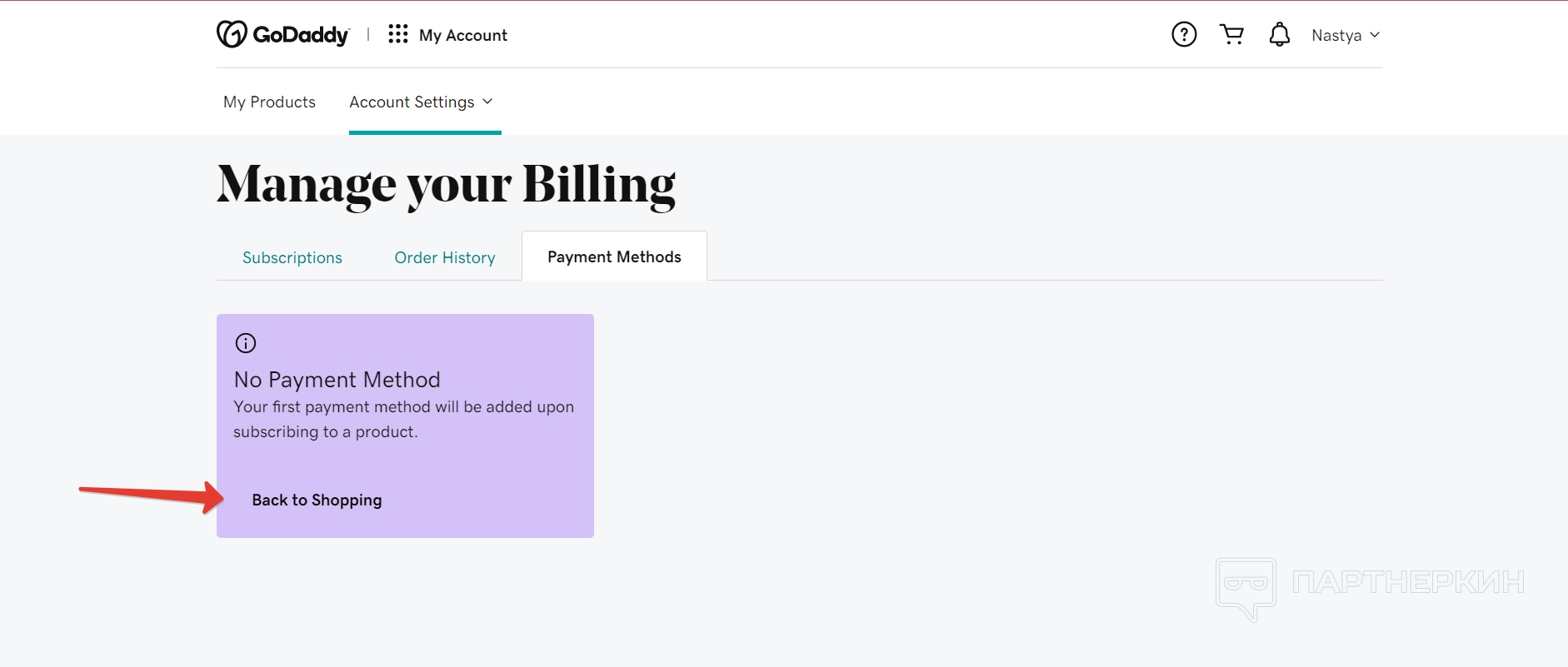 Методы оплаты — по сути, этот раздел является дублем, так как он также переводит в предыдущее меню. Чтобы создать новый метод оплаты, придется перейти к оформлению покупки — только после оплаты способ добавится в список.