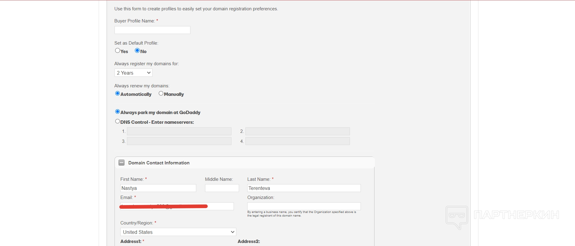Значения домена по умолчанию — в этом разделе можно настроить данные, которые нужны при покупке домена. После настройки пользователь сможет использовать их по умолчанию и не заполнять каждый раз. Среди данных: никнейм, период регистрации домена, настройка автоплатежей, добавление DNS-записей, контактная информация о пользователе, а также техническая, административная и платежная контактная информация. После сохранения данных при покупке домена все настройки будут применяться к нему автоматически.