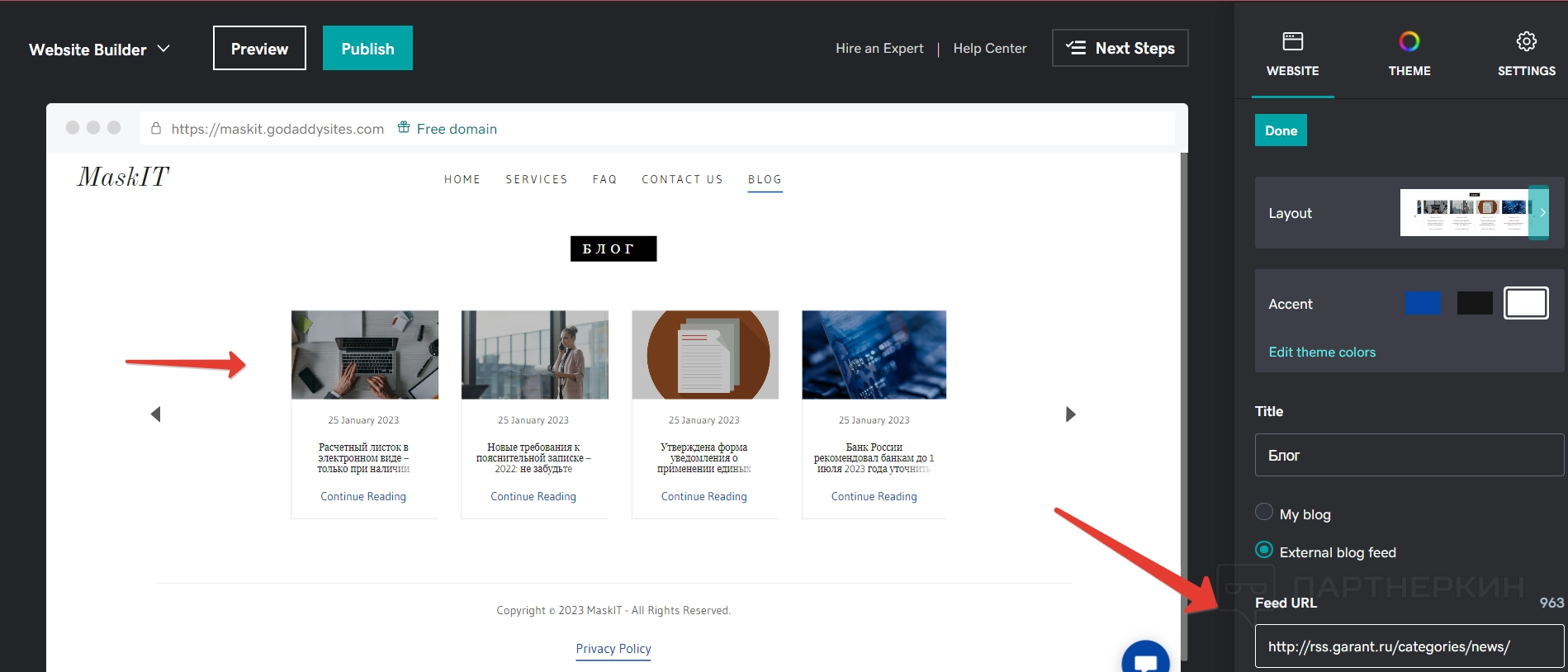 Мы оставим ленту новостей, чтобы показать наглядно все изменения — для примера возьмем ссылку на рандомную RSS-ленту.