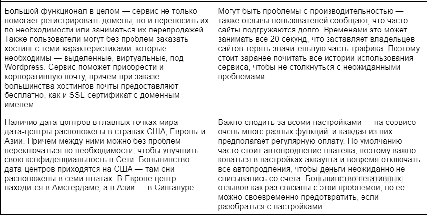 Если говорить о функционале сервиса, то он неплохой — есть возможность приобретать бесплатные домены, SSL-сертификаты, корпоративные почты, а также в целом продвигать сайт. При регистрации домена он по умолчанию обеспечивается серьезной защитой со стороны сервиса. При этом если хочется дополнительно создать сайт или приобрести веб-хостинг,