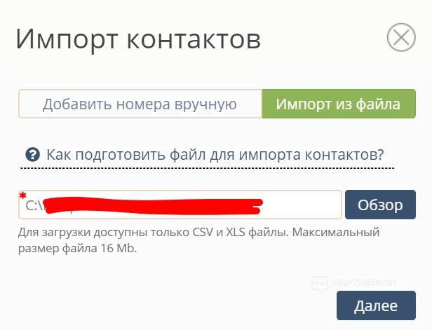 • Откроется диалоговое окно «Импорт контактов». Здесь можно добавить контакты двумя способами — вручную или импортировать их из файла.
