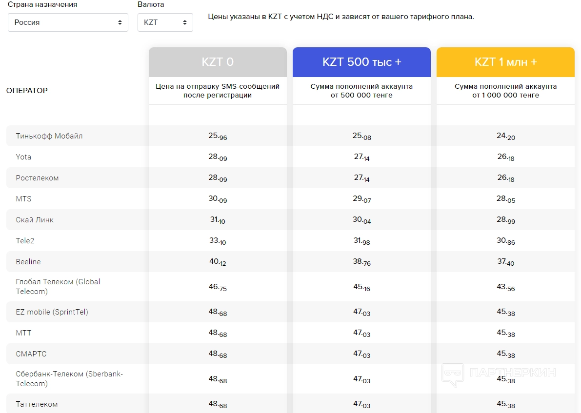 Стоимость на рассылку SMS-сообщений зависит от страны назначения. На платформе