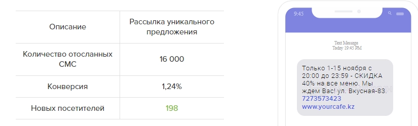Пример СМС-рассылки для рекламы ресторана или кафе: