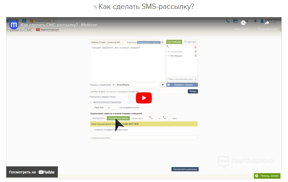 • Как сделать SMS-рассылку. Специалист рассматривает три способа создания рассылки — по телефонным номерам, группам контактов и персонализированная рассылка по группам контактов.