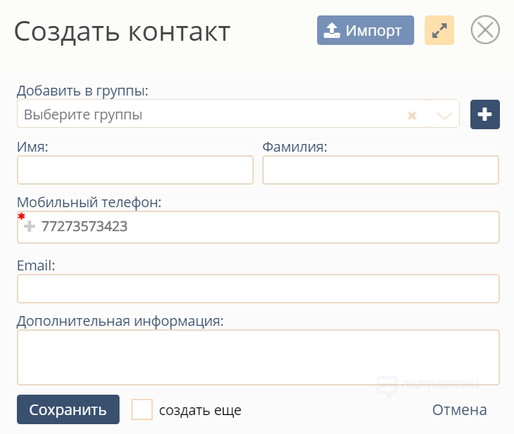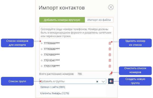• Быстрый импорт контактов. Добавление контактов вручную или загрузка всей клиентской базы происходит за несколько кликов.