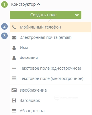 к веб-сайту пользователя или CRM для автоматического импорта необходимых данных