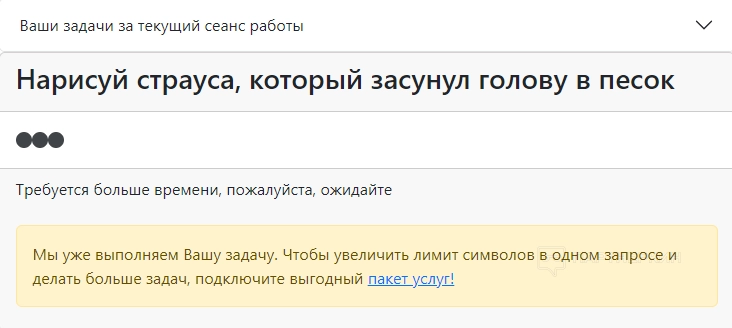 так и не сгенерировал изображение. Возможно, нейросети нужно больше времени. Однако не каждый пользователь готов ждать так долго.