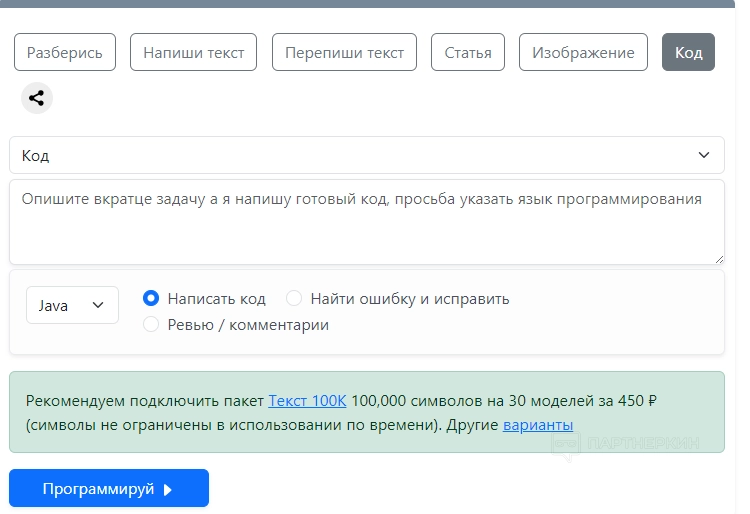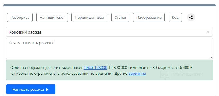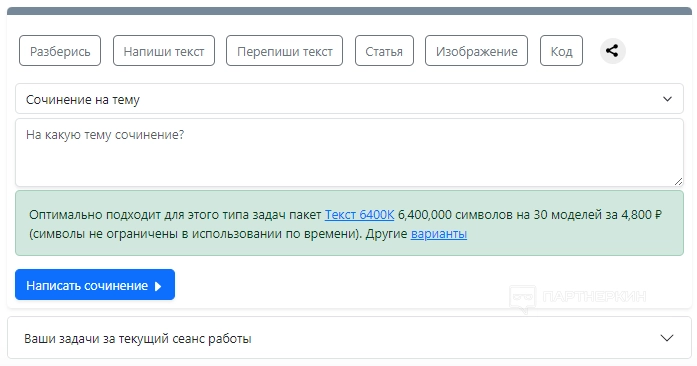 Чтобы воспользоваться инструментом, необходимо кратко описать задачу, а