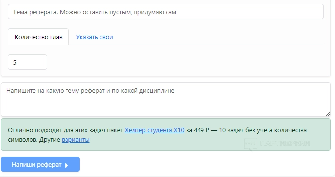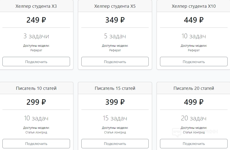Как и в случае со статьями лонгрид, доступ к модели «Реферат» возможен после пополнения баланса или подключения пакета.