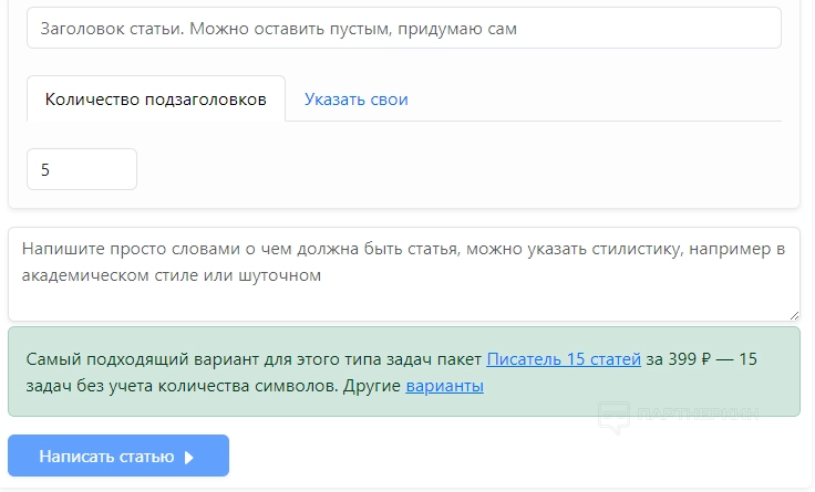 Важно : доступ к модели «Статья лонгрид» возможен после пополнения баланса или подключения пакета. При создании статьи рекомендуется указывать свои подзаголовки. Это повысит точность и качество результата. Перед использованием созданной нейросетью статьи ее следует проверить и прочитать. Некоторые элементы потребуется отредактировать.