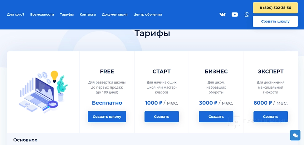 Новички могут попробовать бесплатный пакет на 180 дней для развертки школы до первых продаж. Функционал демо-версии не ограничен, кроме количества учеников. Изначально их может быть не больше 9. Потом можно добавлять любое количество абитуриентов.