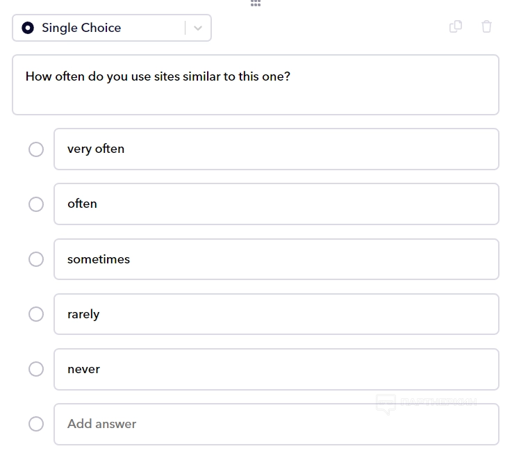 Если выбрать, например, «Единственный выбор», то пользователю придется указать вопрос и разные варианты ответов, которые тестировщики должны для себя выбрать.