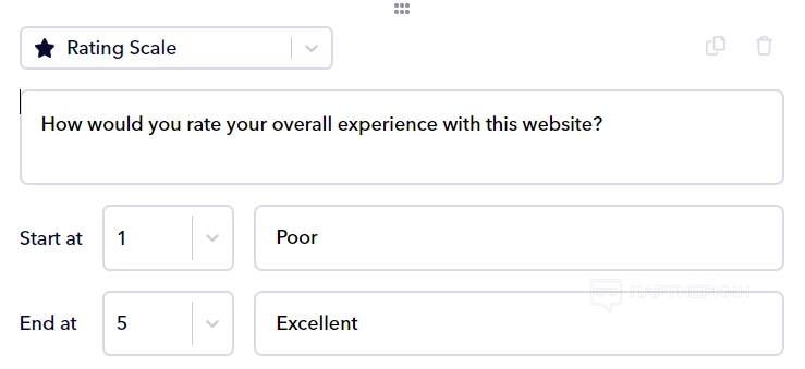 Еще один полезный вариант — «Рейтинговая шкала». В этом случае пользователь может задать вопрос по конкретному блоку на сайте, а тестировщики оценят эффективность или удобность этого блока по 5-бальной шкале.