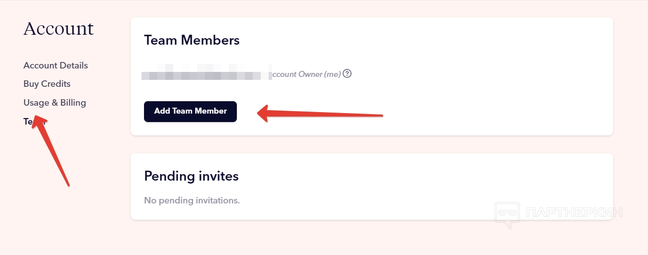 Во вкладке «Команда» владелец учетной записи может добавлять сторонних пользователей. Для этого нужно кликнуть на «Добавить участника команды» и указать электронную почту.