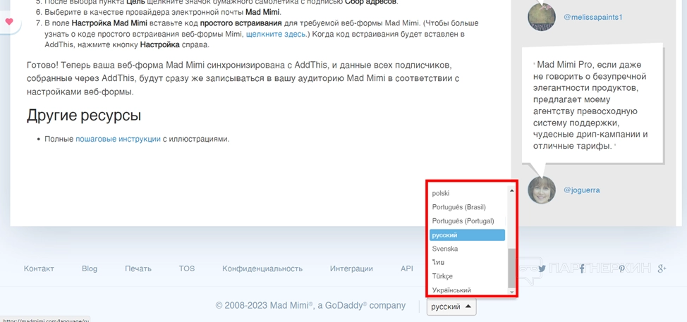 Mad Mimiотмечают, что у сервиса очень много дополнительных опций. При этом главной фишкой является интеграция. Платформа может синхронизироваться с CRM, разными сторонними ресурсами и социальными сетями. Также пользователи отмечают хорошую работу отчетности и аналитики, шаблонов и API.