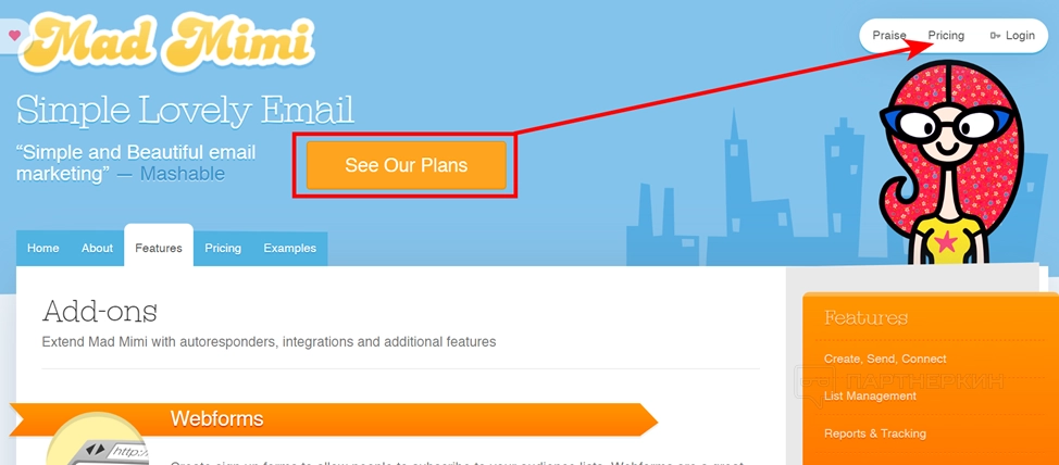 - На главной странице выберите пункт See Our Plans или «Pricing».