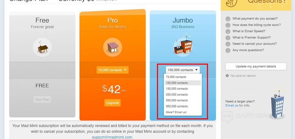 Внимание ! За каждую 1 000 писем достаточно уплатить $0,40. При этом
