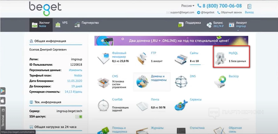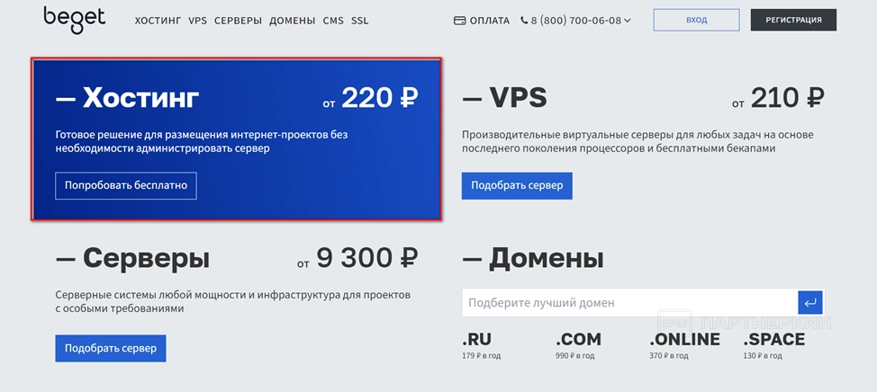 Вначале нужно выбрать хостинг. Рассмотрим на примере beget.