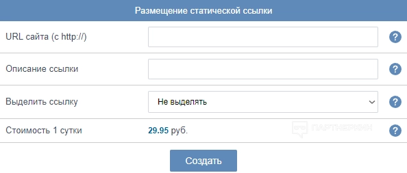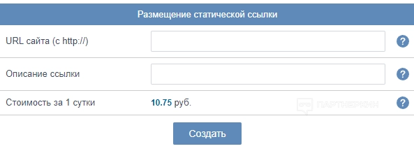 Размещается на определенное количество дней. При этом числе переходов по ним может быть неограниченное. Заказчик получает заинтересованных посетителей на свой проект. Ссылка показывается при просмотре серфинга. Форма выглядит так:
