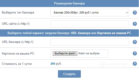 - Стоимость за 1 сутки. Сумма, которую необходимо оплатить за день показа баннера.