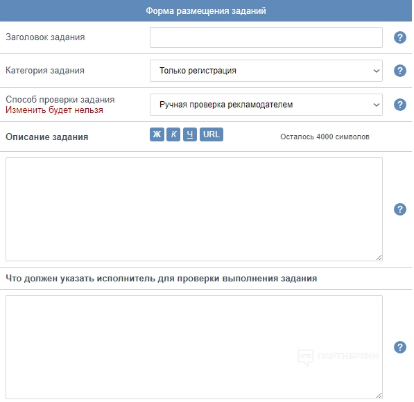 - Категория задания. Необходимо разместить задание в соответствующей категории (социальные сети, постинг, работа с криптовалютами и другие).