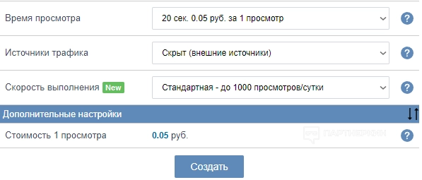 - Стоимость 1 просмотра. Сумма, которую нужно заплатить за 1 просмотр.