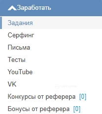 Все задания расположены на главной странице в разделе «Заработать». Они распределены на следующие категории: