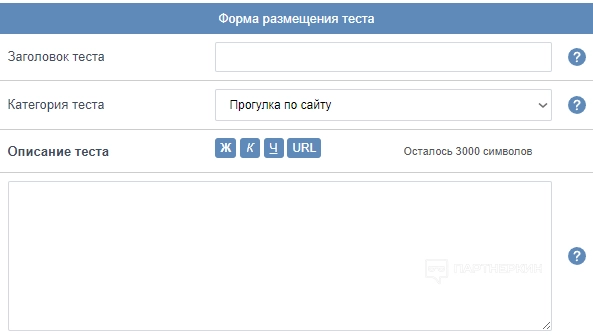 Уникальный сервис, позволяющий пригласить человека на интернет-ресурс заказчика, исследовать его или произвести какие-либо действия, после чего — ответить на 3-5 контрольных вопросов. Форма размещения теста: