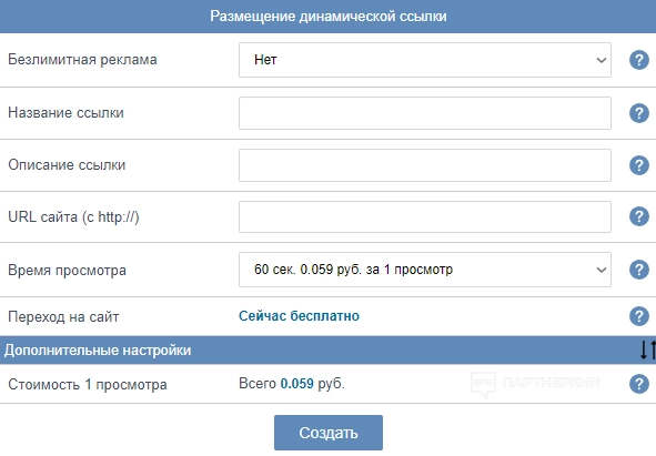 - Стоимость 1 перехода. Сумма, которую нужно оплатить за один переход по ссылке.