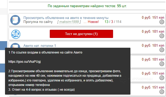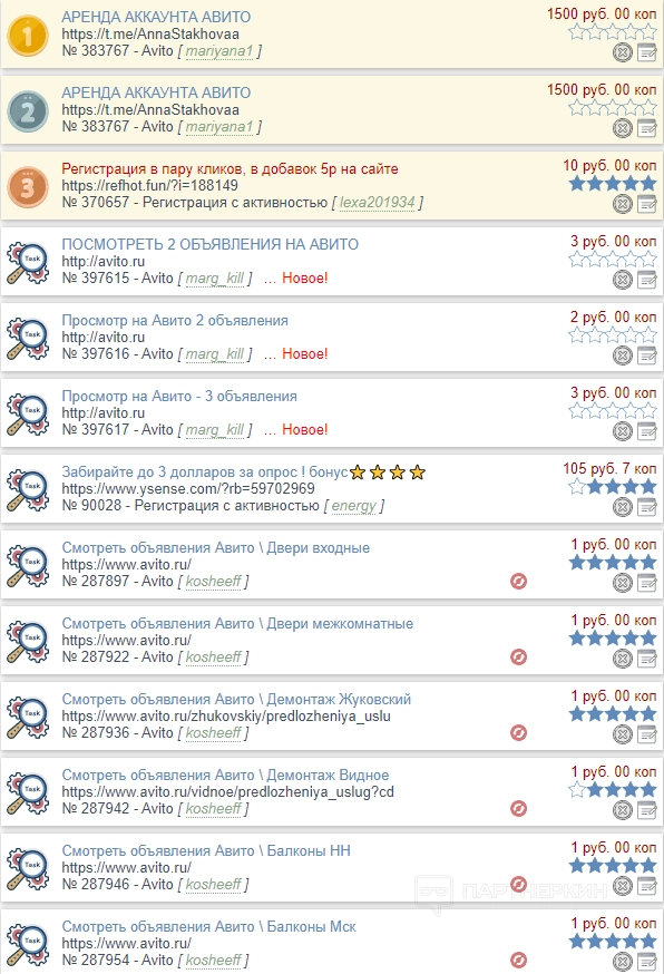 Здесь представлены разные задания от заказчиков — например, посмотреть несколько объявлений на «Авито», поучаствовать в опросе, установить приложение, подписаться на телеграм-канал, пригласить друзей в группу в «Одноклассниках» и многое другое. Некоторые предложения выглядят так: