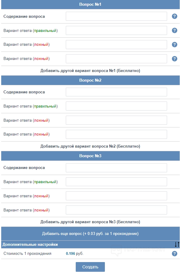 - Стоимость 1 прохождения. Сумма, которая будет списана с баланса теста, за одно прохождение.