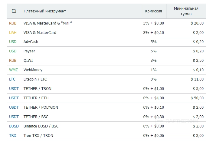 Лимиты и комиссии по выводу разными способами выглядят следующим образом: